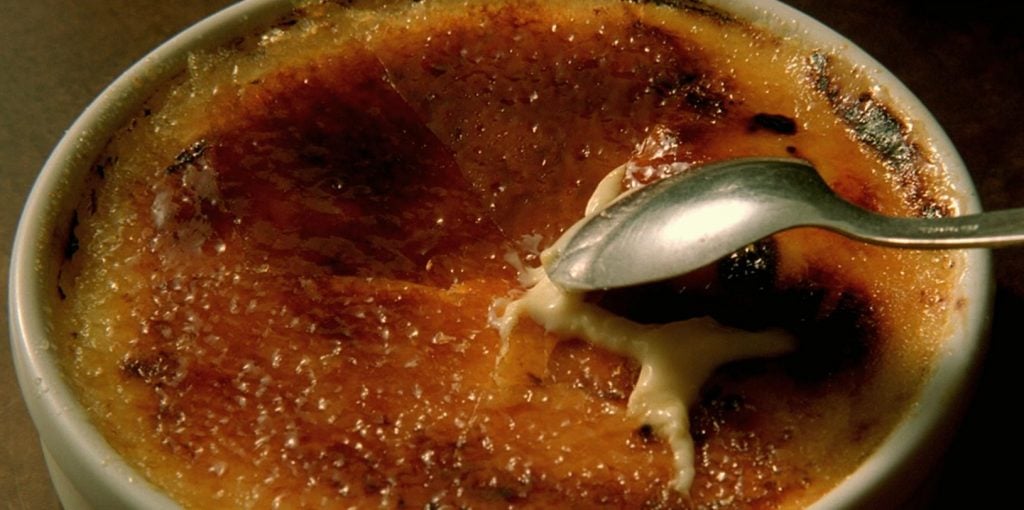 Spain has also tried to take the credit, however the history of crema catalana is very different. Legend has it that it was the Catalan nuns who invented it in occasion of a visiting bishop: originally it was supposed to be a pudding, but it came out too runny and so they sprinkled some hot caramelized sugar on top in order to hide the mistake. Unlike its French cousin, the crema catalana is flavored with cinnamon and prepared with milk, without the addition of cream, in a saucepan, while the crème brûlée in a bain-marie. The common hallmark feature? Amélie’s beloved crust, which is obtained by burning the sugar sprinkled over the freshly baked cream with a blowtorch.