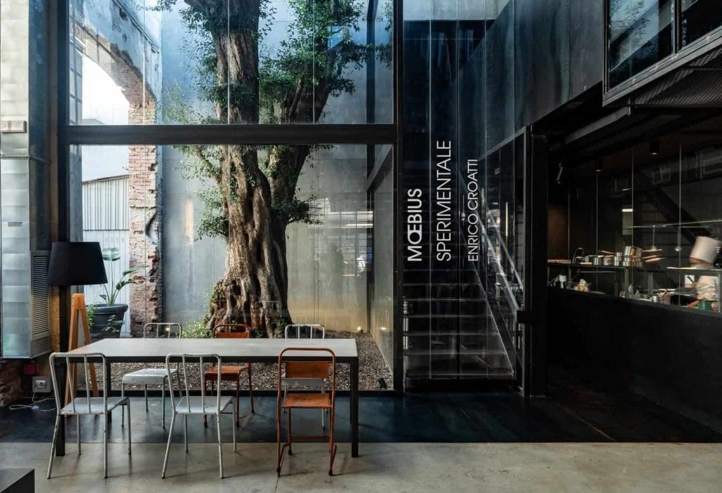 Something was in the air: at the start of 2024, the venue was included in the 50 Best Discovery List, a sort of map of must-watch spots across five continents. For months, the bar has been hosting guest bartenders from the most important Italian and international bars and, in turn, participates in events worldwide. In Milan's fiercely competitive scene of architecture and design, Moebius ranks among the top. A stunning venue, opened in 2019 in a former fabric warehouse, with carefully designed décor and volumes, all highlighted by an 8-metre-tall ancient Spanish olive tree—a deity in such a modern space, with its transparent glass walls.