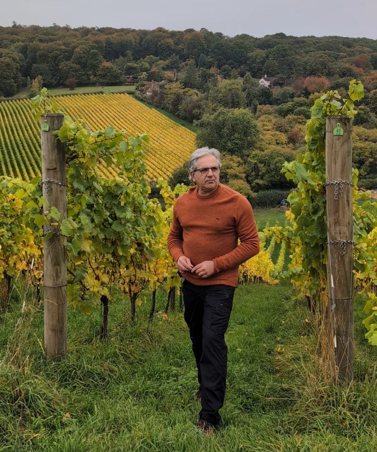 Beneath this very thin, but very fertile layer of top soil is a lot of chalk, a factor which is considered one of the key signatures of great English sparkling wine, but it's what lies above, not beneath, that is of particular interest to Cassinelli.
