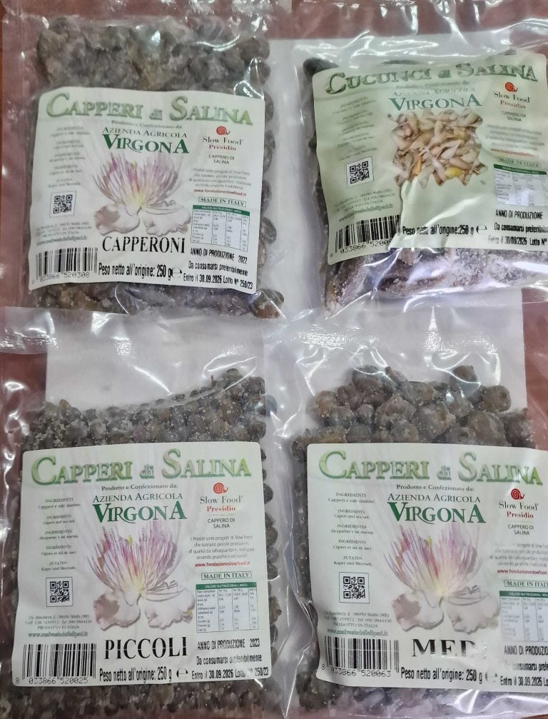 L'azienda possiede circa sette ettari che sono distribuiti tra coltivazioni di vigneti e capperi. I capperi sono prodotti in tre calibri (piccoli, medi, grandi). Quelli medi, di 9-10 millimetri, lo zoccolo duro della produzione, si presentano ben selezionati, omogenei nella dimensione e nel colore verde muschio scuro, molto carnosi, croccanti e succosi. Il profumo è quello intenso di cappero e al palato risulta sapido ma non salato. Vengono utilizzati per la preparazione di marmellate, sughi e pesti.