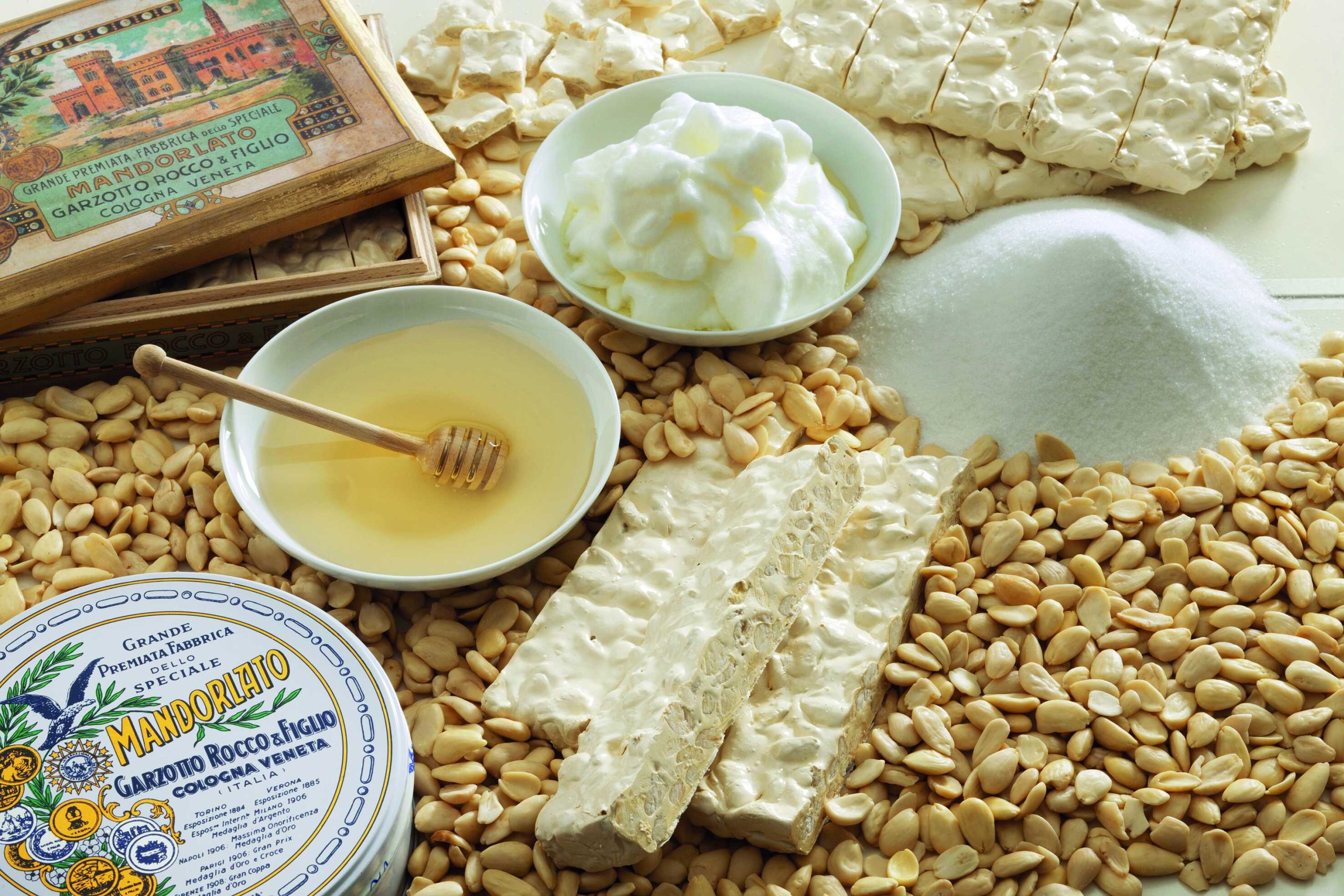 Mandorlato Garzotto has a tradition dating back almost two hundred years. It is made using high-quality Italian ingredients: sugar, Sicilian acacia honey, Apulian almonds and egg white. It is carefully processed without flavourings, colourings or preservatives. In addition to the Classic version, there are also Superiore, Zero, Morbido and Nocciolato varieties.