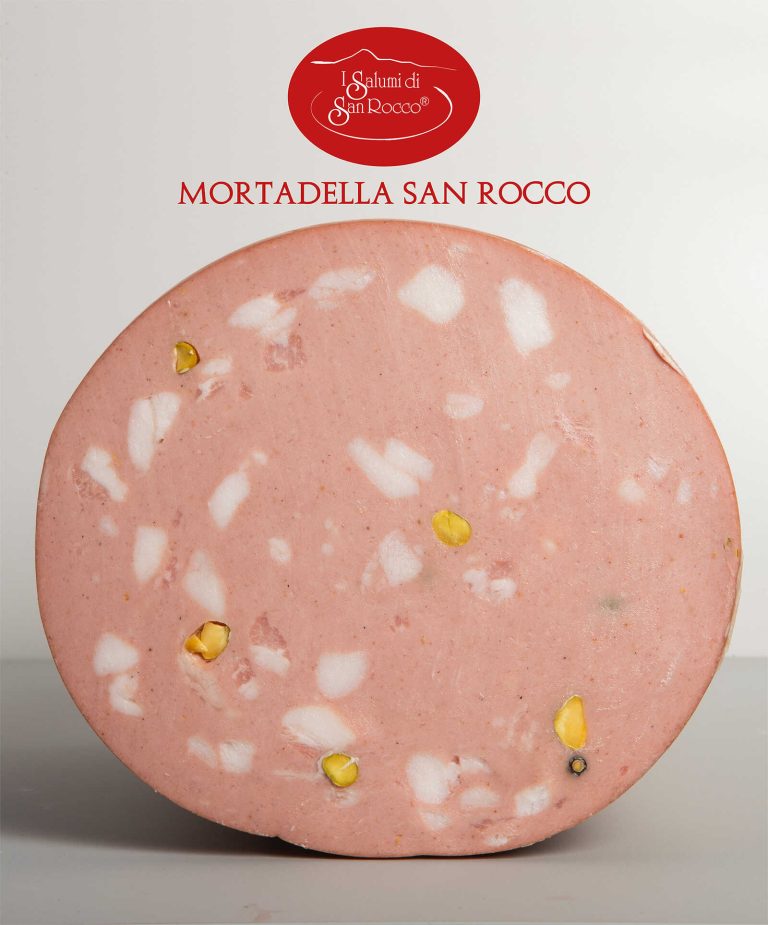 Since 1976, Cibaria has been selecting Italian regional specialities for restaurants and gourmet shops. The company entrusts the production of certain foods to artisans who work under its supervision and according to its recipes. I Salumi di San Rocco is a line dedicated to Roman pork specialities, revisited in a contemporary key and made with fresh Italian pork. The mortadella is made with shoulder, pancettone, minced pancetta, tripe, throat meat and 15% fat, then flavoured with herbs and spices, ascorbate and sodium nitrite. It has a compact, rosy slice and a sweet aroma of pork and spices.