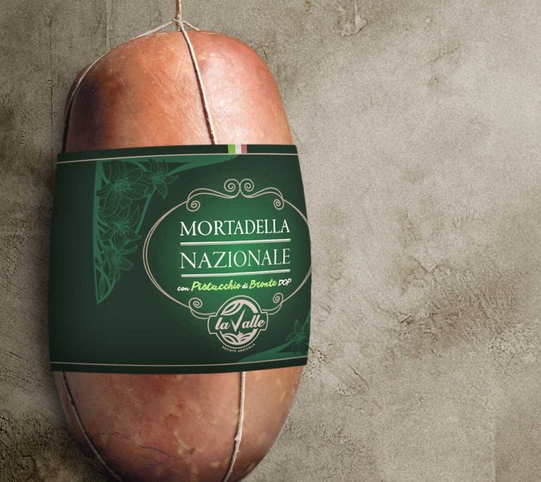 Mortadella Nazionale with Bronte DOP pistachios is made from cuts of heavy Italian pork. Cooking times vary depending on the size of the product. The pieces weigh 15 kg in natural casings or 50 or 100 kg in synthetic casings. La Valle Mortadella is traditional in all its expressions. It has a compact, soft and juicy texture, with lard, generous pistachios and peppercorns. The aroma and flavour are typical of spices that are not overpowering and blend well with the high-quality pork. The taste is also well-balanced, very flavourful but without being excessive. It is clean and elegant.