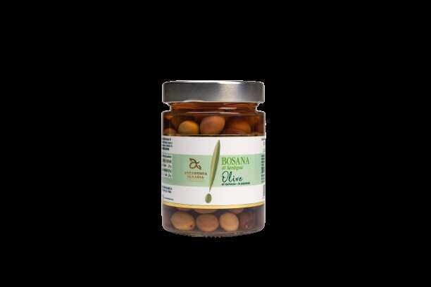 Le olive Bosana di Sardegna in salamoia si presentano con un colore dal verde al bruno. Le olive raccolte e pulite da rami e foglie, lavate e selezionate vengono immerse in una soluzione di acqua, sale e limone, per almeno 12 mesi cambiando frequentemente la soluzione salina. L'odore richiama l'oliva verde. Il gusto si fa apprezzare per l'ottimo equilibrio, la dolcezza, il piacevole finale amarognolo e la persistenza.