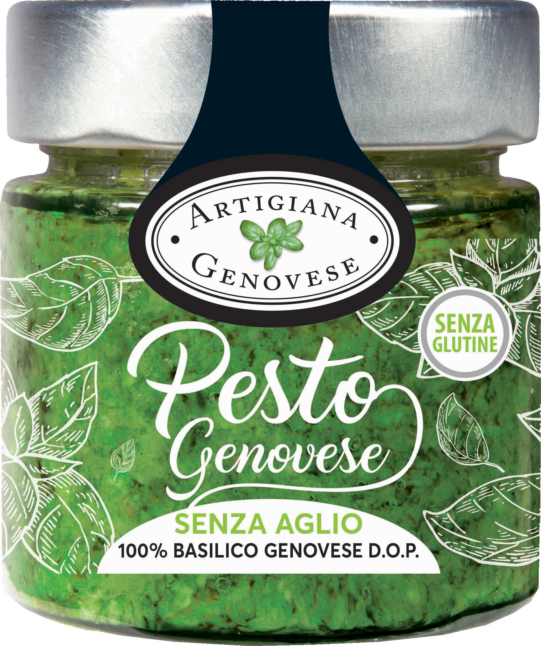 The garlic-free version of Artigiana Genovese fresh pesto preserves the authenticity of the traditional recipe, but stands out for its delicacy. The fresh aroma of Genovese DOP basil emerges in all its intensity, enriched by the creaminess of high-quality extra virgin olive oil. Pecorino Romano DOP, Parmigiano Reggiano DOP, Grana Padano DOP and pine nuts, according to the classic Genovese pesto recipe, give it a pleasant complexity, perfect for those looking for an authentic taste, but without garlic.