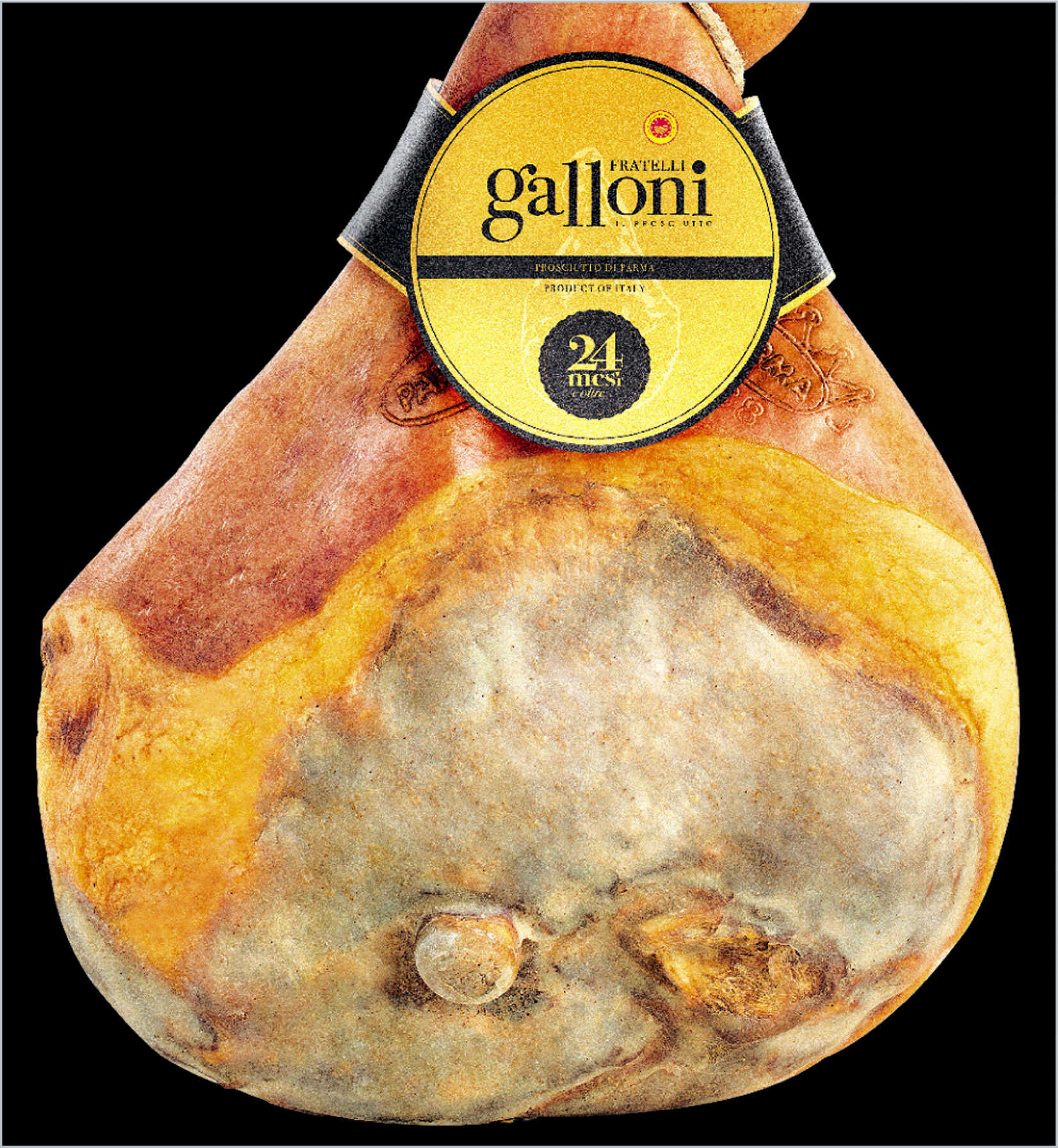Galloni Etichetta Oro 24-month Parma Ham represents the most authentic expression of Italian charcuterie excellence. Each leg is still salted by hand by master salters, who skilfully calibrate the amount of salt according to the characteristics of each individual piece. The long and natural maturation process, lasting over two years, allows the development of a complex and unmistakable aromatic bouquet, made up of elegant aromas and delicate yet profound flavours. The result is a refined, authentic and harmonious ham, capable of satisfying even the most demanding palates.