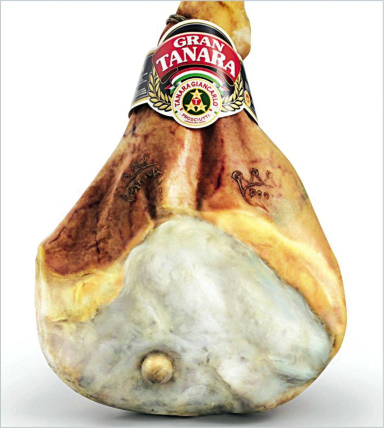 GRAN TANARA Parma Ham is made exclusively from the finest pork legs sourced from farms located in the most traditional breeding area for heavy pigs. Salting is still strictly done by hand to ensure that each leg is seasoned with the minimum amount of salt; minimum ageing of 24 months in the company's cellars. The aromatic profile is complex, with hints of well-aged meat accompanied by salty and spicy notes. The taste is sweet, intense and persistent, with an extremely melt-in-the-mouth texture.