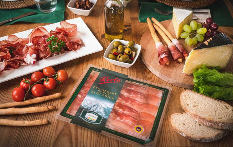 Lo Speck Alto Adige IGP 90 g Recla è unico e autentico, garantito dal marchio IGP. I macellai Recla selezionano solo cosce suine di prima qualità, salate e speziate a mano secondo una ricetta segreta di famiglia, custodita da tre generazioni. Affumicato delicatamente con legno di faggio e stagionato per almeno 22 settimane all'aria pura della Val Venosta, è tagliato a fettine sottili e possiede un gusto armonico e inconfondibile.